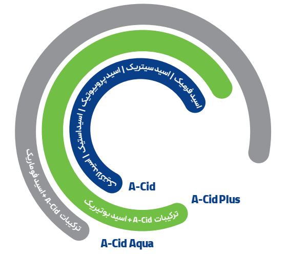 اسیدیفایر پودری A-CID مجموعه ایی از اسیدهای آلی کوتاه زنجیر(1 تا 7 کربن) و نمک های آن ها با خلوص بالا هستند که دارای خواص متفاوتی از جمله: خوشخوراکی، بهبود عملکرد سیستم ایمنی، بهبود دستگاه گوارش و کاهش ضریب تبدیل خوراک است.