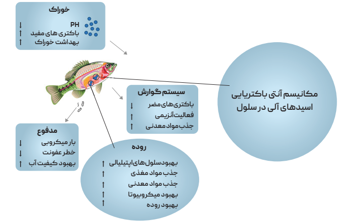انواع اسیدها خوشخوراکی بهبود عملکرد دستگاه گوارش کاهش ضریب تبدیل خوراک کاهشpH افزایش هضم پروتئین خوراک ضدمیکروبی منبع انرژی